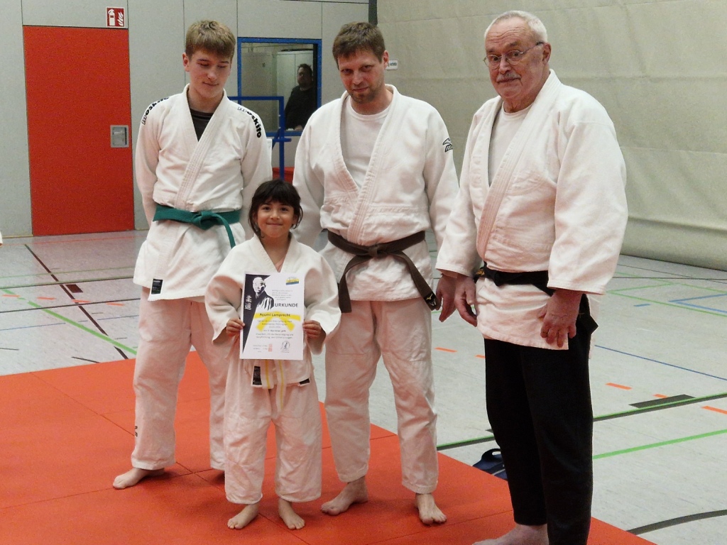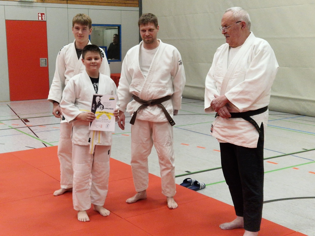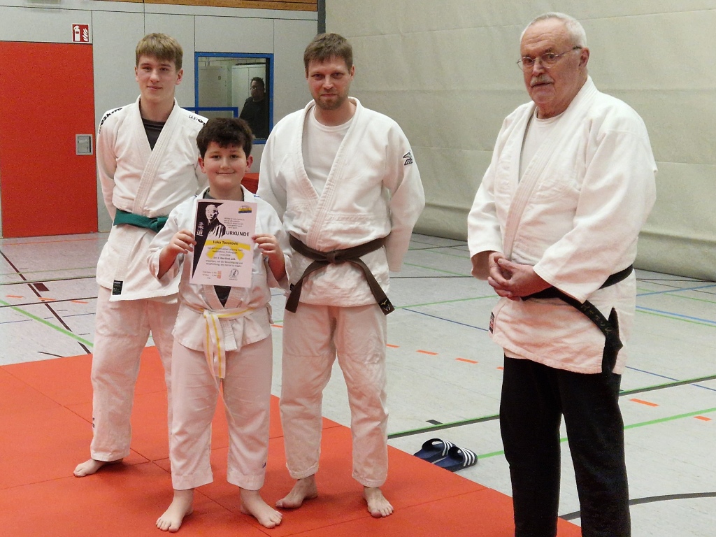 Im letzten Training vor den Osterferien freuten sich Ernst Elenz, Daniel Lercher und Emir Mekic über drei weitere Graduierungen im Kindertraining – der Vorstand gratuliert allen Beteiligten!
