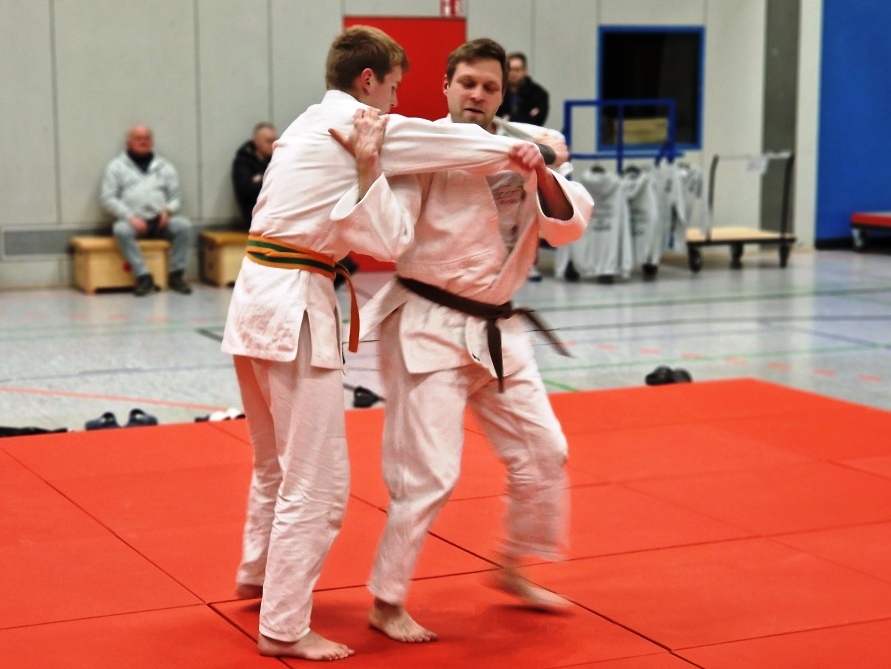 Im Anschluss an diese Demonstration zeigten Emir Mekić (grüner Gürtel) und Daniel Lercher (brauner Gürtel und stellvertretender Vorsitzender) verschiedene Techniken aus der Nage-no-kata, dem sich die vollständige Kodokan Goshin-jutsu mit André Wolf (3. Dan, schwarzer Gürtel) und Jens Schawaller (1. Dan, schwarzer Gürtel) anschloss.