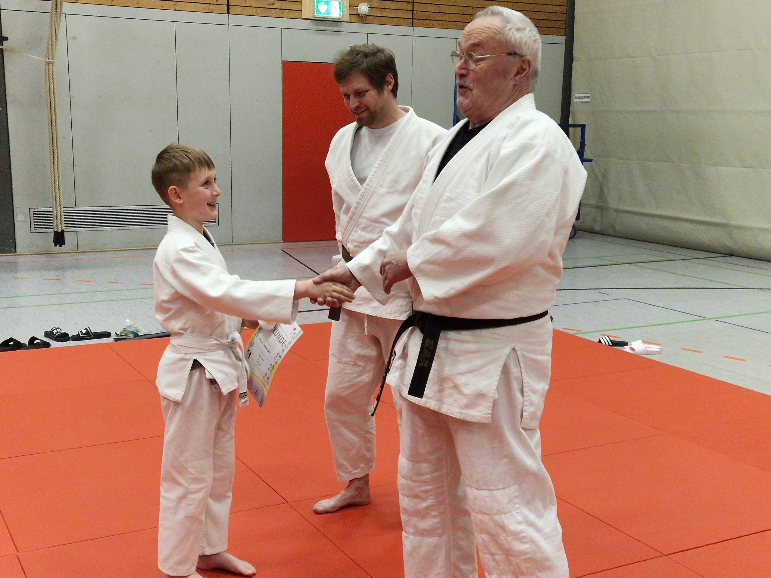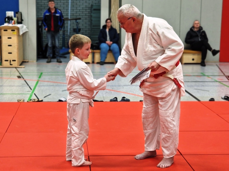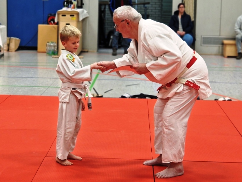 Ein besonderer Dank der Sportfreunde Montabaur Aktiv e. V. ging an Ernst Elenz, der sowohl als Trainer auf der Matte als auch als Präsident am Schreibtisch die Gegenwart und Zukunft des Vereines sichert. Zur Freude aller Beteiligten gab es Weckmänner mit Schwarzgurt zum Mitnehmen, bevor sich die Judoka zum Abgrüßen und Mattenabbau versammelten.