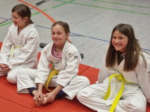 Im letzten Training vor den Osterferien freuten sich Ernst Elenz, Daniel Lercher und Emir Mekic über drei weitere Graduierungen im Kindertraining – der Vorstand gratuliert allen Beteiligten!